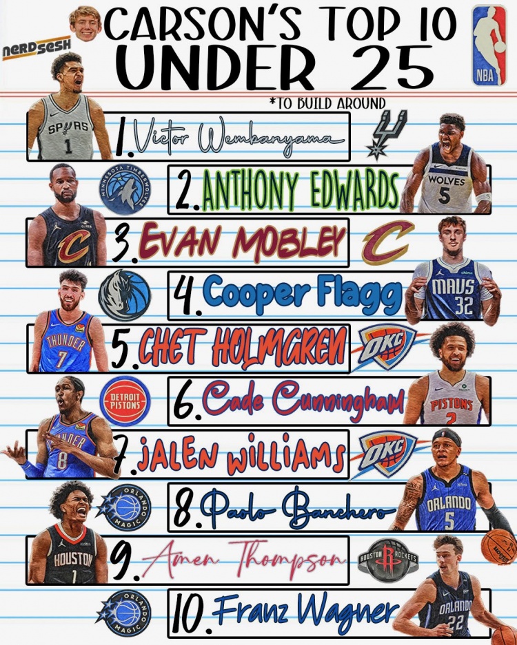 PG电子官网-两位美记评25岁以下top10:文班&华子均位列前二 弗拉格在列