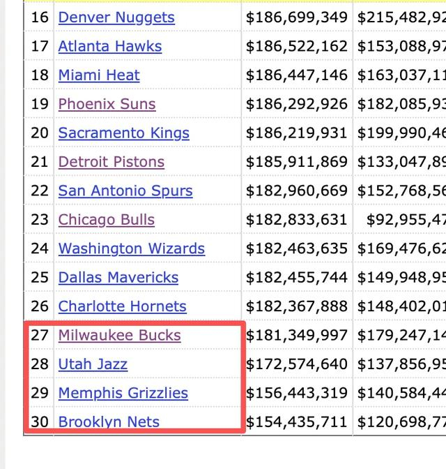 经过休赛季一通操作和赛季中的操作之后,雄鹿本赛季总年薪是排在联盟倒数第4的,这样的阵容,无缘季后赛也是可以理解的。