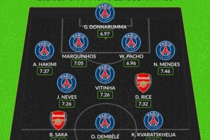 Pocket Gaming-Whoscored列枪手&巴黎本赛季评分最高阵:前者仅萨卡&赖斯入选