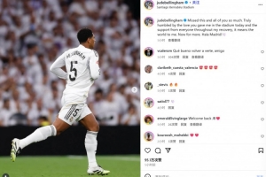 贝林厄姆社媒纪念复出:非常想念大家,感谢主场球迷们的支持